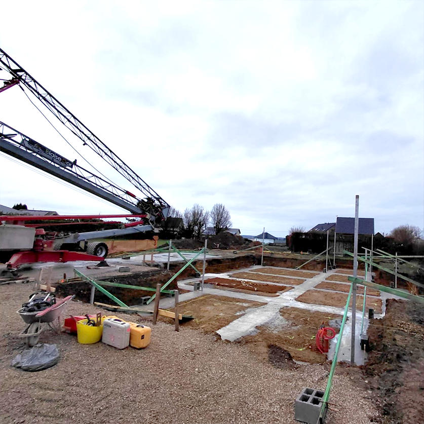 Nous réalisons les fondations selon l’étude de sol : semelles filantes, radiers, plots…